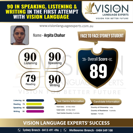 Best PTE, OET, NAATI & IELTS Coaching Classes in Australia. Attend a FREE TRIAL class at Vision Language Experts and enroll with confidence. We are so confident that we have launched first time 1-week trial with no obligation to pay. We will work alongside and assist you in getting your desired scores. Register now and take a step forward towards your permanent pathway. Read More